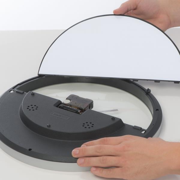 Minimalistyczny, designerski zegar. Wytrzymała obudowa. Dużo miejsca na nadruk na samej tarczy. Cichy mechanizm. Dodatkowy wskażnik temperatury i wilgotności powietrza. Brak baterii w zestawie.