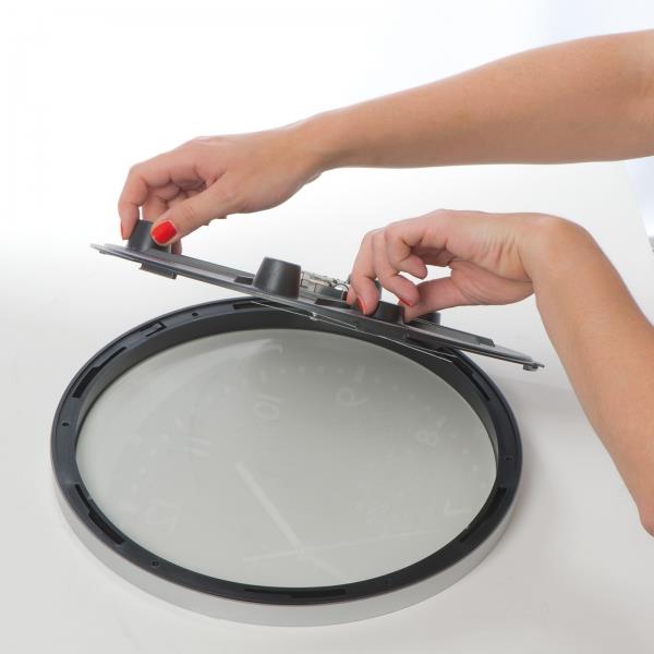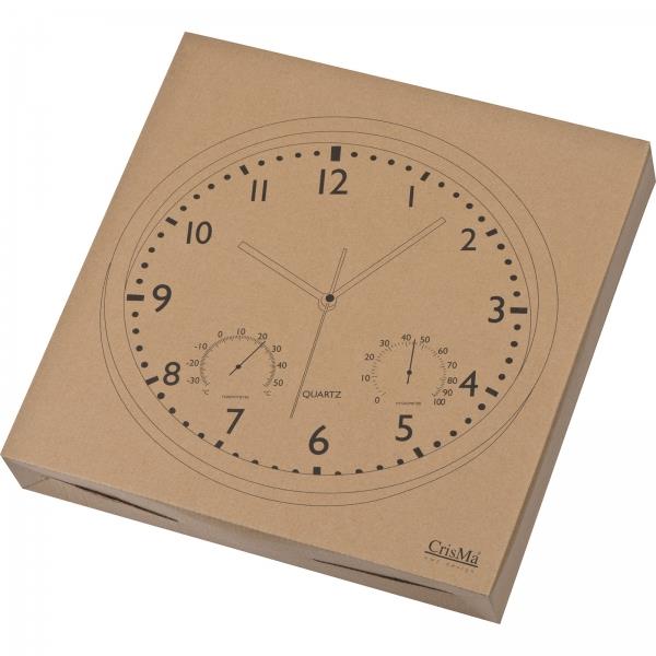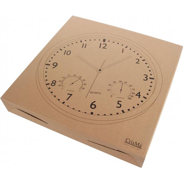 Elegancki zegar w wytrzymałej obudowie. Kontrastująca tarcza i duże cyfry. Dodatkowy wskaźnik temperatury i wilgotności powietrza. Brak baterii w zestawie.