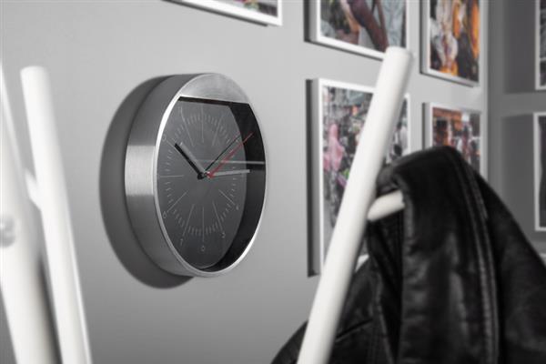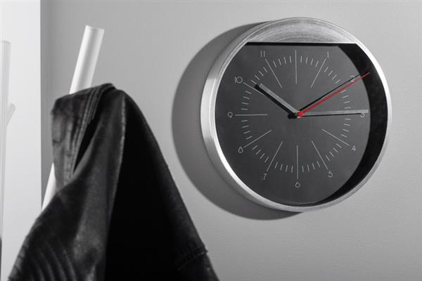 Zegar ścienny metalowy, o prostym eleganckim wyglądzie. Logo umieścimy nad tarczą zegara techniką graweru laserowego. Wymaga baterii: AA x 1 szt. Bateria nie jest dołączona.