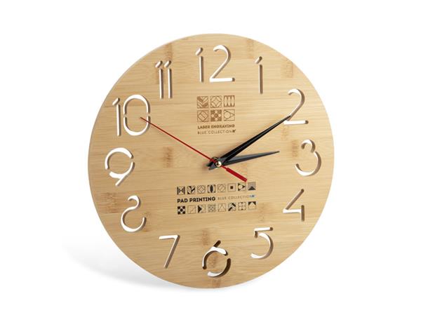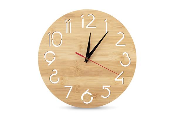 Zegar ścienny TOKKI to połączenie funkcjonalności i estetyki w naturalnym wydaniu. Wykonany z bambusa, wyróżnia się nowoczesnym wyglądem, a przeźroczyste cyfry nadają mu lekkości i subtelnego charakteru. Klasyczne wskazówki zapewniają wygodny i czytelny odczyt godziny, a cichy mechanizm sprawia, że zegar doskonale sprawdzi się zarówno w domu, jak i w biurze czy kawiarni. Montaż jest prosty, a zasilanie odbywa się na jedną baterię AA (nie dołączoną do zestawu). Zegar TOKKI to również ciekawa propozycja na gadżet reklamowy — dzięki możliwości znakowania logo staje się stylowym elementem promocyjnym.