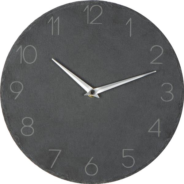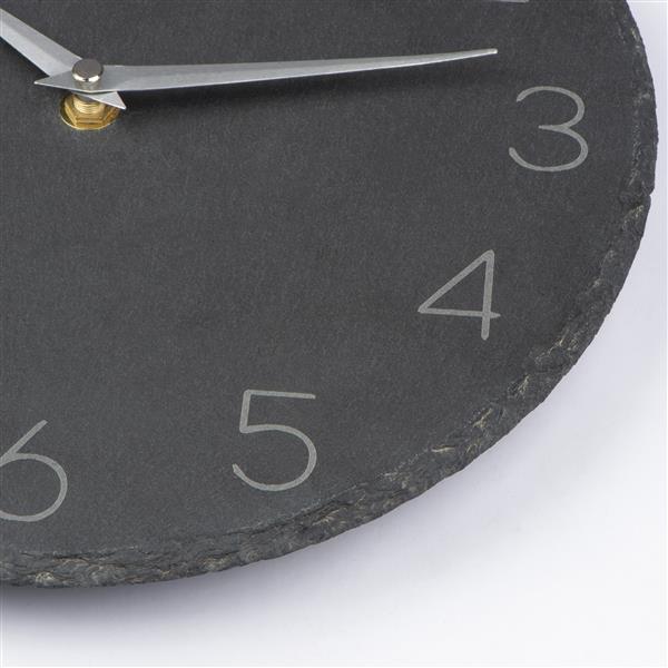 Elegancki zegar ścienny wykonany z łupka (kamień naturalny) ze srebrnymi wskazówkami. Oryginalny zegar, który przyciąga wzrok.