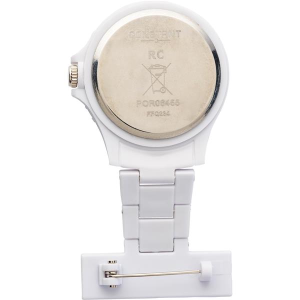 Zegarek pielęgniarki ze srebrnymi elementami i agrafką