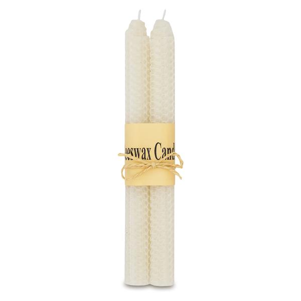 Zestaw 2 świec wykonanych ręcznie ze zwiniętych arkuszy woskowych. Zapakowany w tekturowe pudełko.