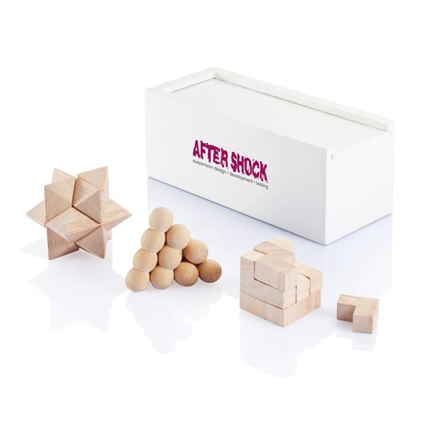 Zestaw gier 3 łamigłówek, wykonane z drewna, w pudełku upominkowym z papieru kraftowego