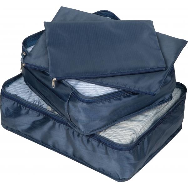 Praktyczny zestaw pokrowców, ułatwiający organizację bagażu. W 4-częściowym zestawie znajduje się duża i mała torba zamykana na zamek z siateczką oraz dwie mniejszcze torebki zamykane na zamek, mogące służyć za kosmetyczkę.Rozmiary pokrowców:duży z siateczką 39,5 x 29,5 x 9,5 cmmały z siateczką 29,5 x 26,5 x 9,5 cmduża kosmetyczka 34 x 25 cmmała kosmetyczka 27 x 21 cm