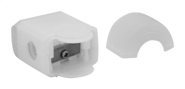 Zestaw składający się z temperówki i gumki. Description: Zestaw składający się z temperówki i gumki. Primary Color: biały Material 2: Guma Material 1: Plastik (ABS) Rozmiar: 60×30×21 mm