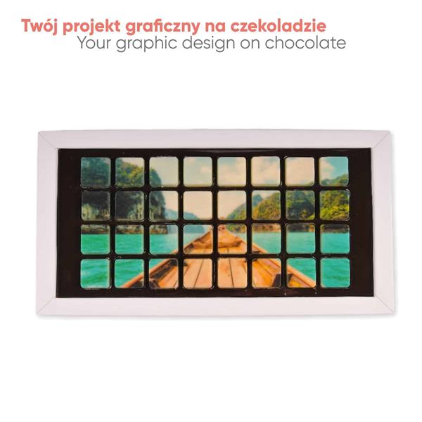 Zestaw 32 rozpływających się w ustach czekoladek, spersonalizujemy wybraną przez Ciebie grafiką, tekstem lub zdjęciem bezpośrednio na czekoladzie! Czekoladki, zabezpieczone wypraską wykonaną z R-PET, zamknęliśmy w kopercie, którą możesz dwustronnie spersonalizować nadrukiem cyfrowym, zyskując w ten sposób jeszcze więcej miejsca na swoją reklamę.
