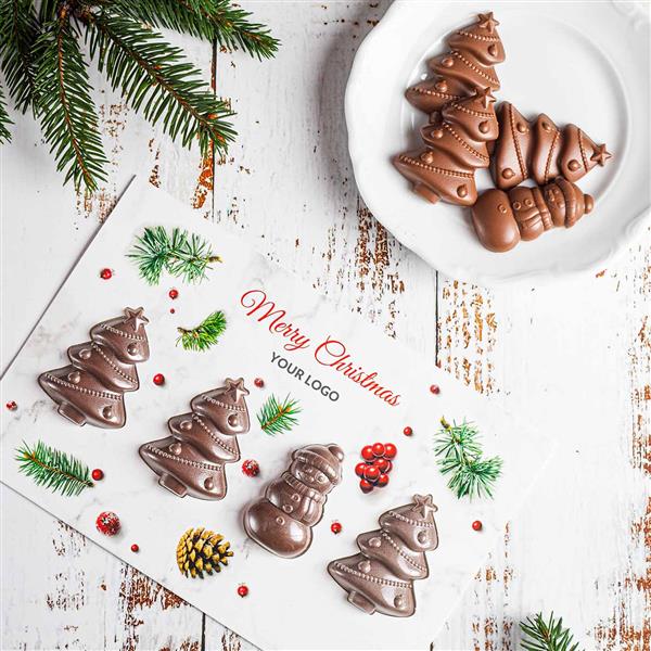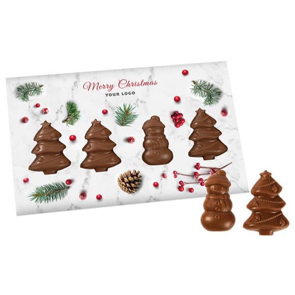 ZESTAW CZEKOLADEK ŚWIĄTECZNA KARTKA Z CHOINKAMI