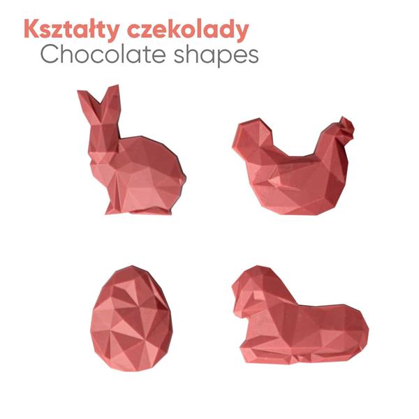 Wielkanocną Farmę możemy przygotować w naszej Czekoladowni z wybranej przez Ciebie czekolady, a jest ich aż 10 – od klasycznie mlecznej, przez karmelową ze szczyptą soli, po wytrwaną WholeFruit bez dodatku cukru.