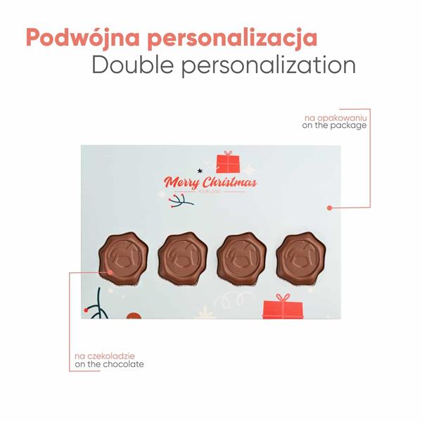 Zestaw kształtowych czekoladek reklamowych, wykonanych z belgijskiej czekolady z Twoim wytłoczonym logo wyróżni się na tle innych personalizowanych gadżetów reklamowych. Przekaz podbije całkowita personalizacja opakowania!