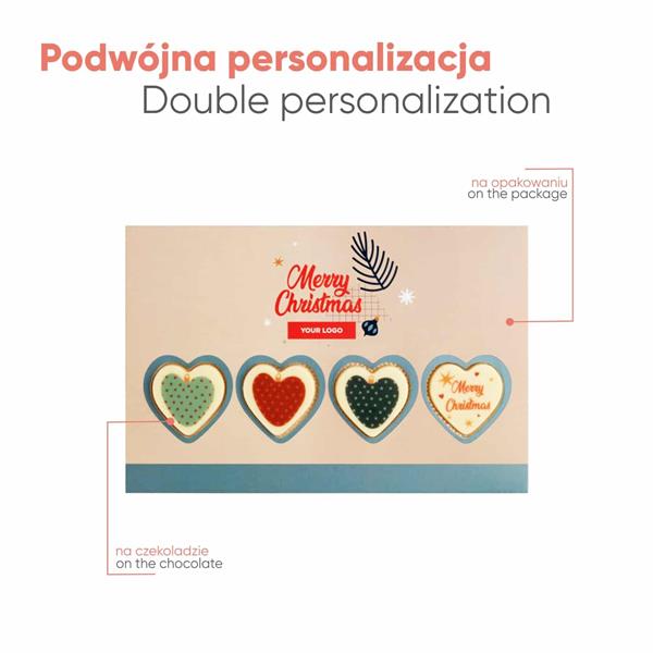 Chcesz się poddać świątecznej atmosferze? W tym roku wyślij życzenia dla partnerów biznesowych w nietypowej formie. Pomoże Ci w tym Koperta B5, a w niej spersonalizowana kartka z 4 czekoladkami w kształcie serca!