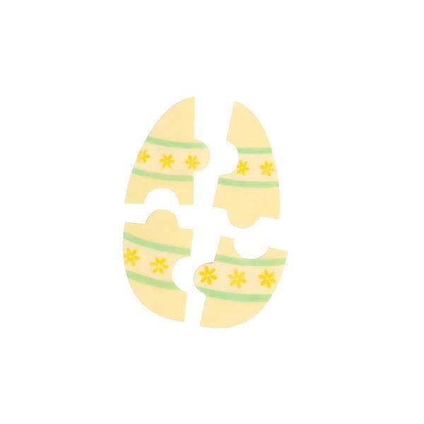 Ten zestaw czekoladowych puzzli, które układają się w kształt jajka przygotowujemy z białej czekolady jakości Top Gourmet, takiej po którą sięgają mistrzowie.
