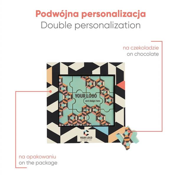 Jeśli jedną z cech Twojej marki jest kreatywność, to mamy dla Ciebie idealną propozycję! Są nią… Choco Puzzle, czyli 12 czekoladek kształtowych, które spersonalizujemy dowolną grafiką lub zdjęciem bezpośrednio na czekoladzie. Pyszne i pomysłowe!
