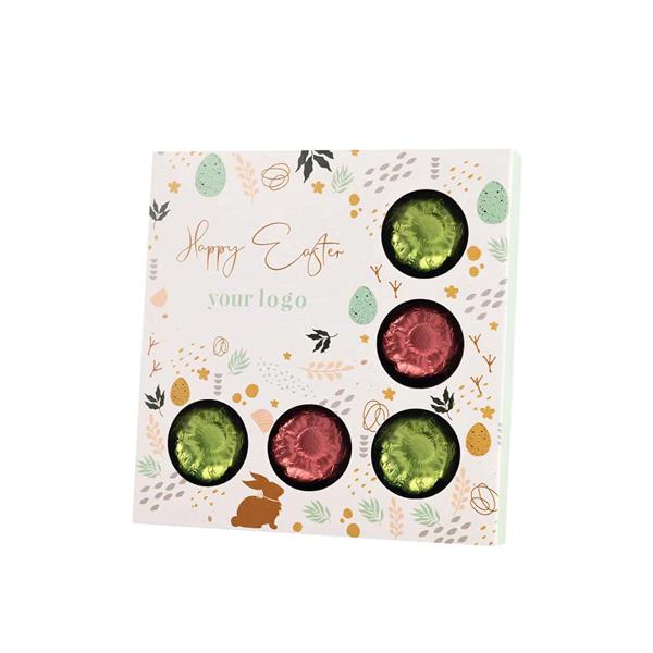 Czekoladki zamknęliśmy w eleganckim pudełeczku z okienkiem, dzięki czemu jeszcze przed otwarciem można podziwiać kunszt tego produktu.