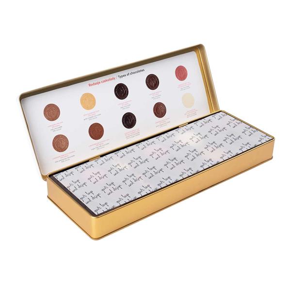 Zestaw Czekoladowych Medali w Puszce Premium to specjalnie przygotowany zestaw degustacyjny, który zachwyci każdego pasjonata czekolady. Znajdziesz w nim aż 10 różnych rodzajów belgijskiej czekolady, co pozwala na wypróbowanie różnorodnych smaków i wybranie swojego ulubionego. Każda czekoladka reklamowa, w formie medalika, jest udekorowana wzorem kakaowca oraz nazwą czekolady, z której została wykonana, co dodaje jej wyjątkowego charakteru.