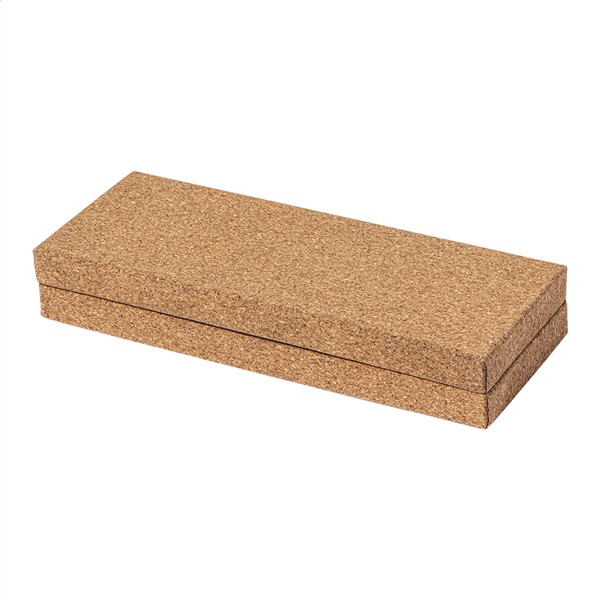 Elegancki, metalowy zestaw składający się z długopisu i pióra kulkowego z korpusem pokrytym naturalnym korkiem. W pudełku upominkowym z naturalnego korka, z niebieskim wkładem.