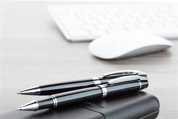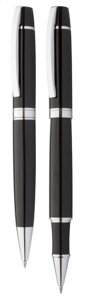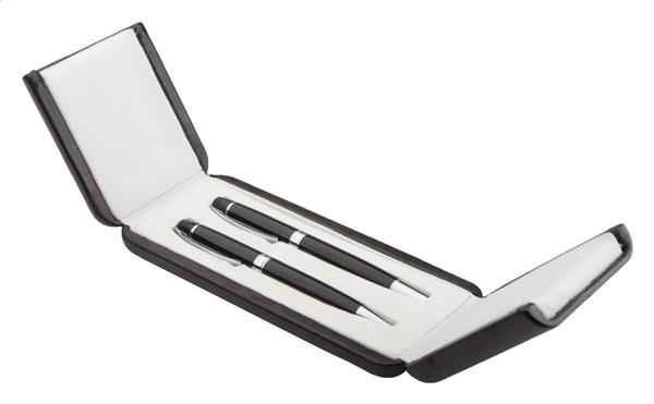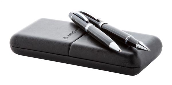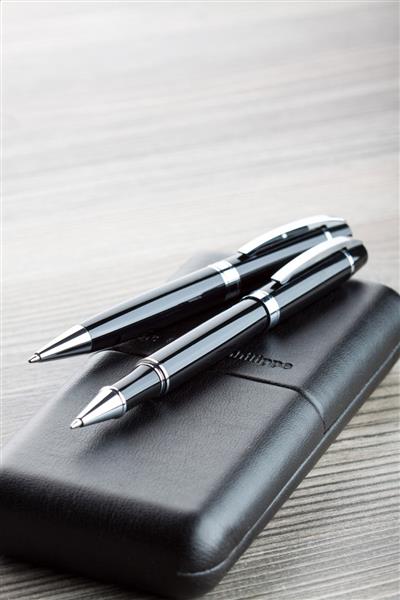 Elegancki zestaw długopisów marki André Philippe zapakowane w pudełko z imitacji skóry, niebieski wkład. Description: Elegancki zestaw długopisów marki André Philippe zapakowane w pudełko z imitacji skóry, niebieski wkład. Primary Color: czarny Rodzaj długopisy: Długopis Material 1: Metal Material 2: Skóra PU Rozmiar: 180×80×30 mm Rozmiar kulki we wkładzie: 0.7 mm Kolor wkładu: Niebieski