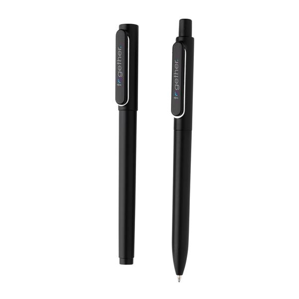 Zestaw 2 długopisów X6, w komplecie: długopis X6 z zatyczką, wkład w kolorze niebieskim w komplecie, tusz o niskiej lepkości pozwala na płynne pisanie, długość pisania ok. 800 m oraz długopis X6 z metalowym klipem, metalicznym wykończeniem na trzonie, niemiecki wkład Dokumental® w kolorze niebieskim w komplecie, długość pisania ok. 1200 m, kulka TC zapewnia wygodne pisanie, ślad węglowy produktu: 0,27 kg CO2