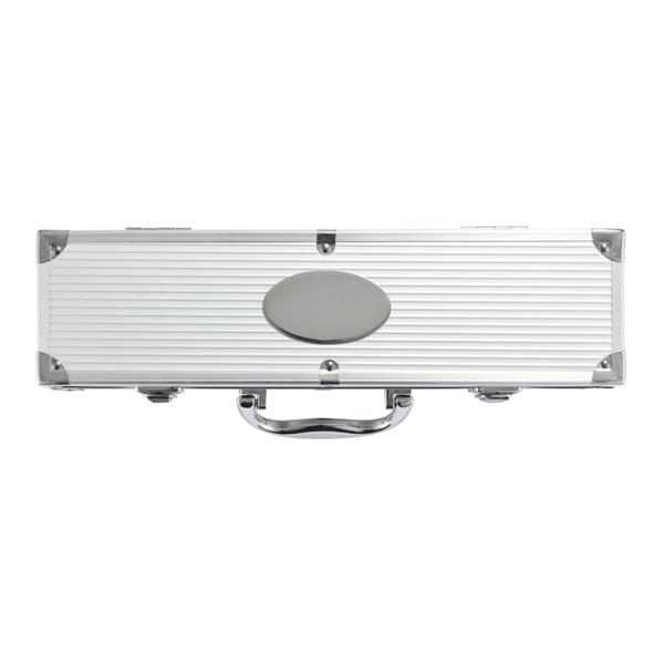 Zestaw akcesoriów do grilla ze stali nierdzewnej, 3 el., w komplecie: szpatułka, widelec z pokrywami ochronnymi i parą szczypiec, rączki ze stali nierdzewnej, w aluminiowym pudełku z uchwytem, ślad węglowy produktu: 7,55 kg CO2