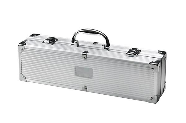 Praktyczny zestaw do grillowania zawierający tylko najbardziej niezbędne przyrządy: łopatkę, szpikulec, szczypce. Pakowany w wygodną walizeczkę. Logo wygrawerujemy na blaszce umieszczonej na walizeczce. Blaszka jest dołączona osobno.