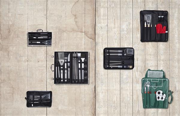 Zestaw do grilla, 4 elementy, pokrowiec na zamek z rączką, pędzel, szczypce, widelec oraz łopatka