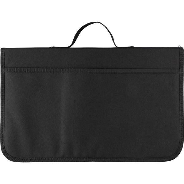 Zestaw do grilla zapakowany w zapinaną na zamek torbę z uchwytem do przenoszenia w dłoni, otwarta przednia kieszeń, zestaw składa się ze szczypiec, noża, widelca i drewnianej deski do krojenia, produkt wykonany ze stali nierdzewnej, drewna i poliestru