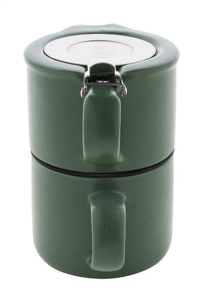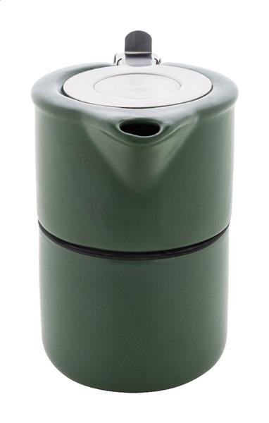 Wysokiej jakości ceramiczny zestaw do herbaty z matowym wykończeniem. W zestawie czajniczek (430 ml) z pokrywką ze stali nierdzewnej i sitkiem do herbaty, zaprojektowany tak, aby można go było ustawić na pasującym kubku (400 ml). W pudełku z papieru kraft.
