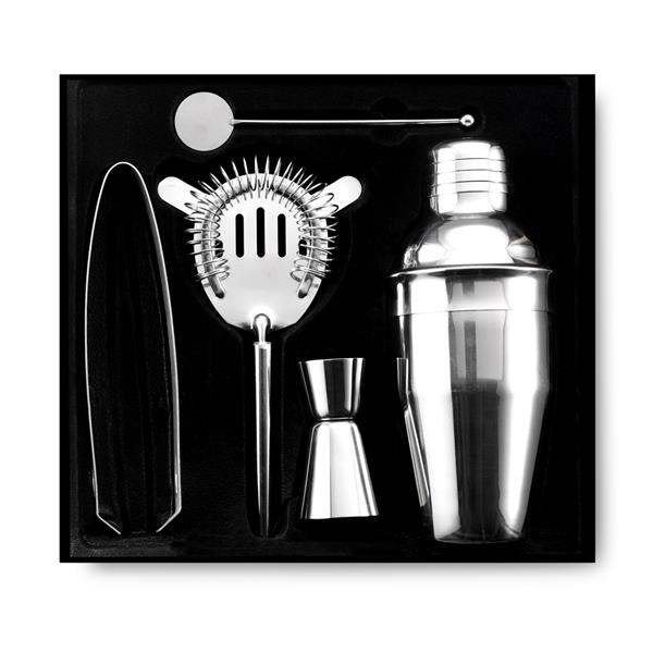 Zestaw do koktajli w pudełku, shaker 350 ml, szczypce do lodu, łyżka