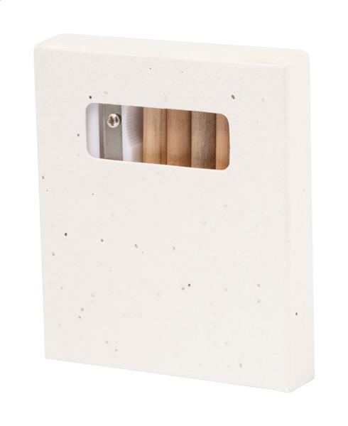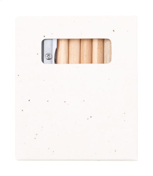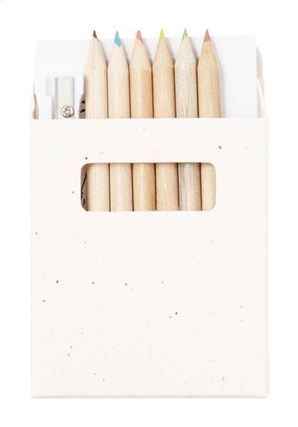 Zestaw do kolorowania w pudełku z papieru nasiennego. Zawiera 6 drewnianych kredek, temperówkę i 20-arkuszową kolorowankę. Pudełko z papieru nasiennego zawiera nasiona petunii w różnych kolorach, które można zasadzić po użyciu.