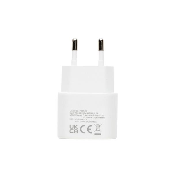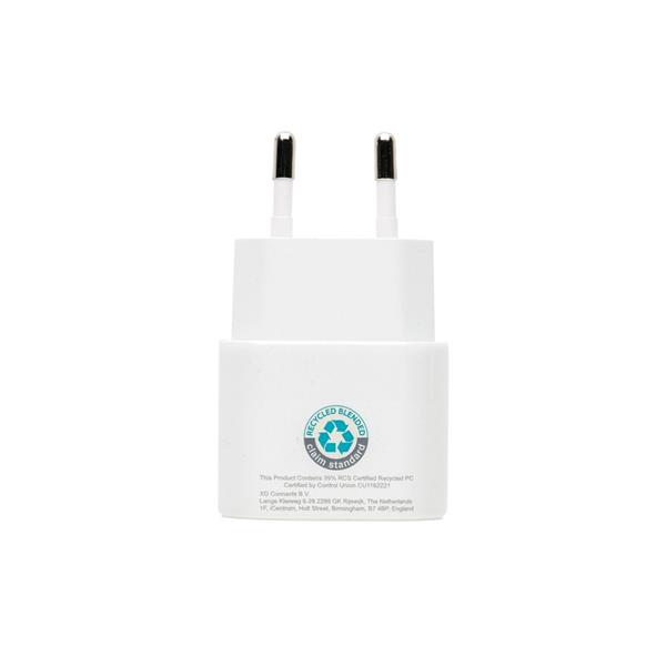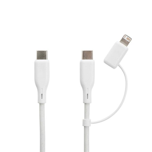 Zestaw do ładowania 2 w 1, ładowarka ścienna USB typu C 20W, kabel 3 w 1 60W, końcówki: 2 x USB C, iOS, wykonane z ABS i TPE z recyklingu, wyjście ładowarki 5V/3A, 9V/2.22A, 12V/1.67A, 20W, całkowita zawartość materiałów z recyklingu obliczona w oparciu o wagę całkowitą przedmiotu: 59%