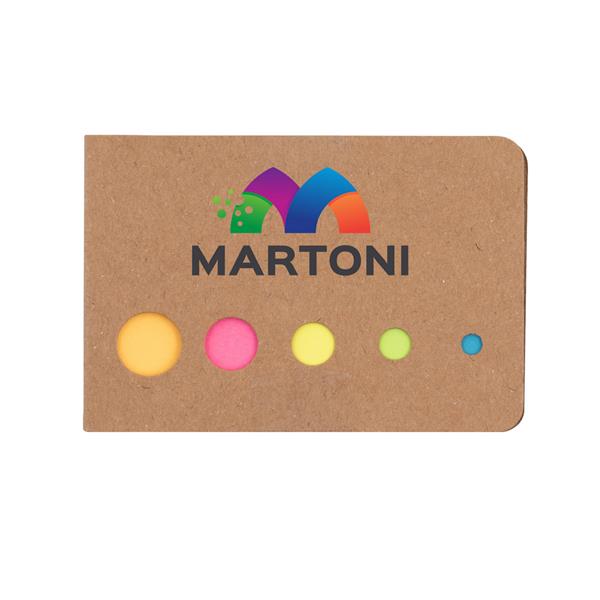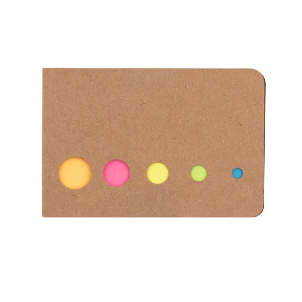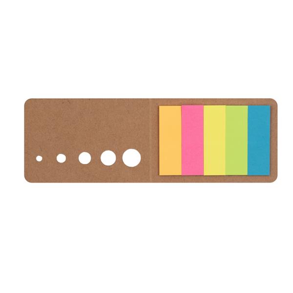 Zestaw karteczek samoprzylepnych, 5 kolorów po 20 szt. (kolory: pomarańczowy, różowy, żółty, zielony, niebieski), karteczki służą do naklejania na stronach książki, zeszytu albo notesu, produkt wykonany z kartonu i papieru