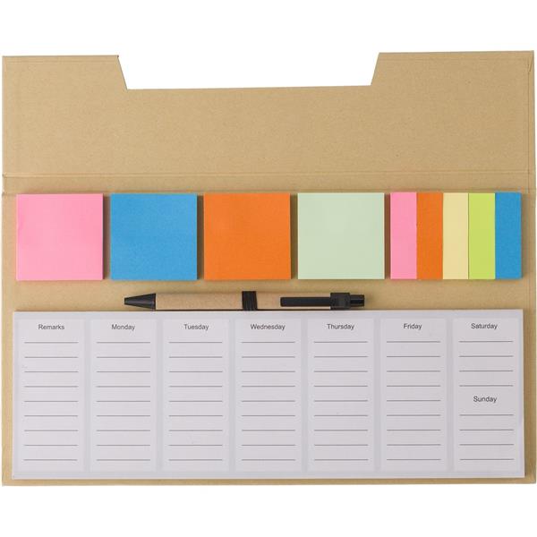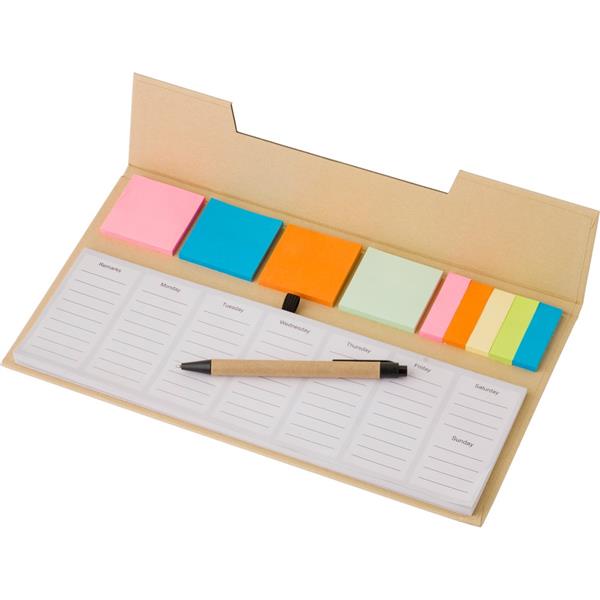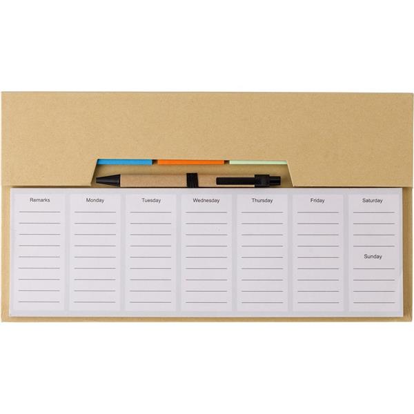 Zestaw do notatek, notatnik, karteczki samoprzylepne, długopis, 50 kartek, na pierwszych 5 stronach planer tygodniowy, pozostałe strony puste