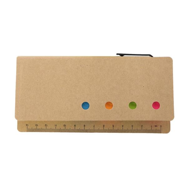 Zestaw do notatek, linijka (14 cm), 4 rodzaje małych karteczek samoprzylepnych (100 szt.) i 1 rodzaj większych, w komplecie długopis