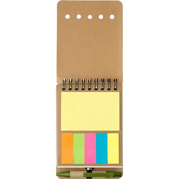 Zestaw do notatek, notatnik (ok. A6, 60 kartek w linie), spiralne bindowanie, 150 karteczek samoprzylepnych i długopis