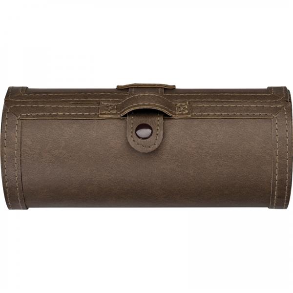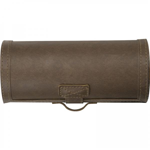 Zestaw do pielęgnacji obuwia w brązowym etui z ekologicznej skóry. Bezbarwna pasta, mała gąbka do czyszczenia, szczotka do obuwia, szmatka do polerowania oraz łyżka do butów.