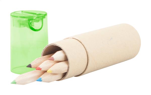 Zestaw 6 szt. kredek z temperówką. Description: Zestaw 6 szt. kredek z temperówką. Primary Color: zielony Material 1: Drewno Secondary Color: naturalny Material 3: Plastik Material 2: Karton Rodzaj długopisy: Ołówek Rozmiar: o27×102 mm
