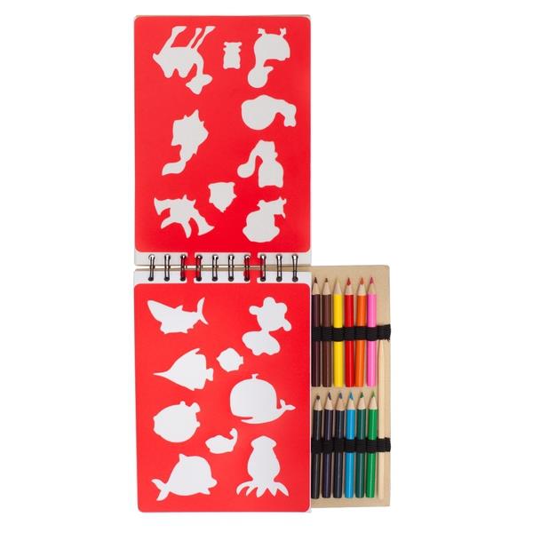 Zestaw do rysowania, składa się z 9 stron o gramaturze 120 g/m2 z kolorowankami, 9 wzorów kolorowanek, 2 szablonów do rysowania, 21 czystych kartek, 2 podkładek do zdrapywania, bambusowego rysika oraz 12 kredek.