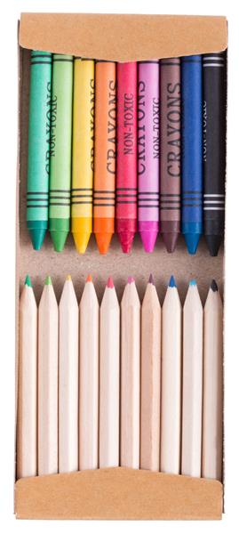 Zestaw do rysowania, 10 kredek zwykłych i 9 świecowych w kartonowym pudełku z okienkiem
