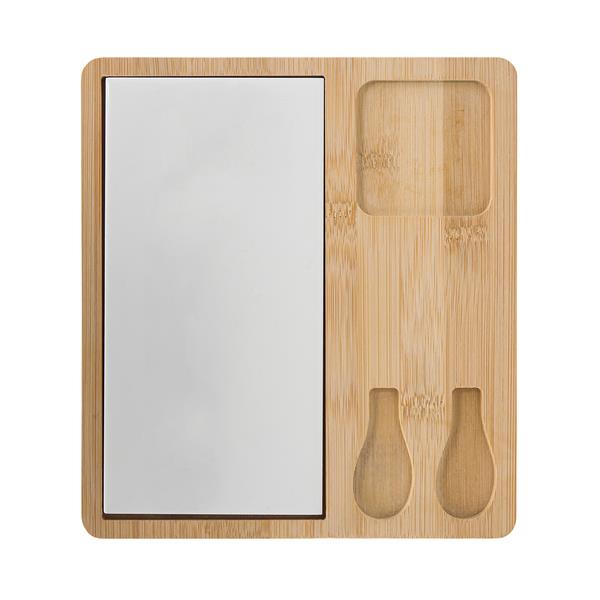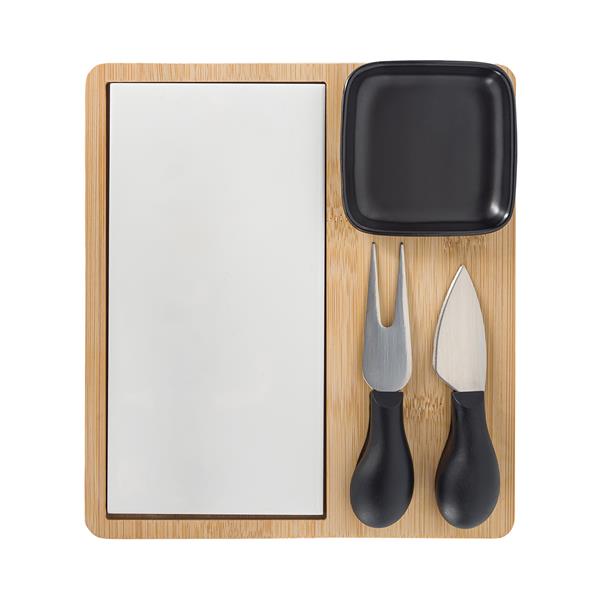 Zestaw do sera to elegancki i praktyczny komplet, który pomaga w przygotowaniu i podawaniu różnych rodzajów sera. Składa się z bambusowo – ceramicznej tacy serwującej, noża, widelca i miseczki.