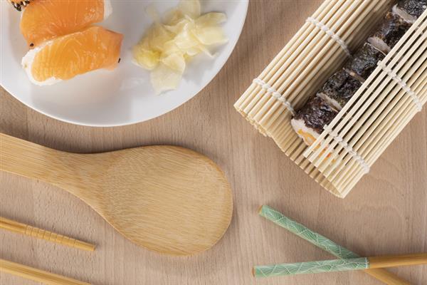 Zestaw do sushi NIGIRI ucieszy każdego amatora samodzielnego robienia sushi. Zestaw zawiera dwie maty do zwijania rolek, bambusową łyżkę, nożyk do smarowania oraz cztery pary pałeczek z autorskim nadrukiem BLUE COLLECTION.