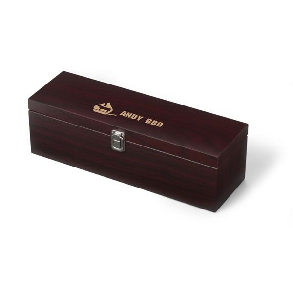 Zestaw do wina 5 el., skrzynka na 1 butelkę (bez wina), akcesoria do wina: pierścień, zatyczka, nalewak z zamknięciem, termometr, nóż kelnerski