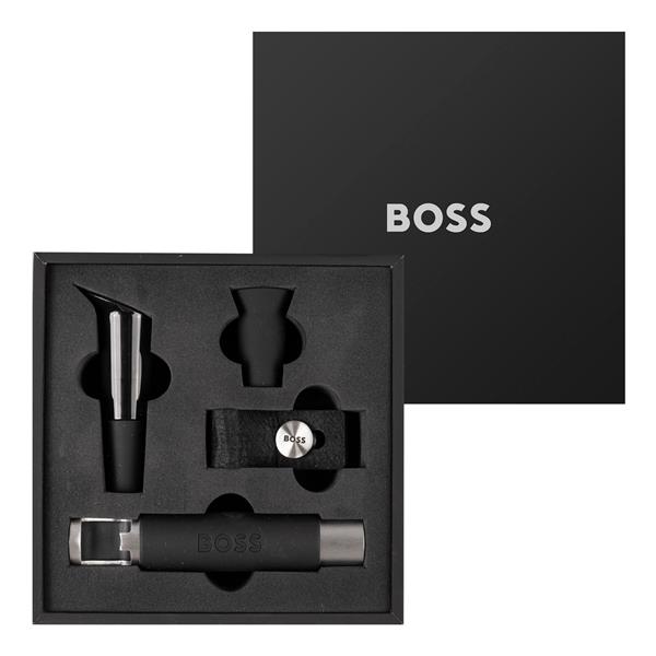 Funkcjonalny i luksusowy pomysł na prezent, nasz nowy zestaw do wina Iconoc łączy w sobie głęboką, matową czerń miękkich faktur ze stalowym podtekstem. Wyczerpujący i pięknie zaprojektowany, jest dostarczany w luksusowym pudełku BOSS.