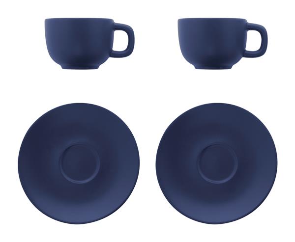 Wysokiej jakości ceramiczny zestaw filiżanek do cappuccino składający się z 2 filiżanek i spodków. Z matowym wykończeniem na zewnątrz i błyszczącym wykończeniem wewnątrz. 200 ml W pudełku z papieru kraft.