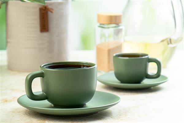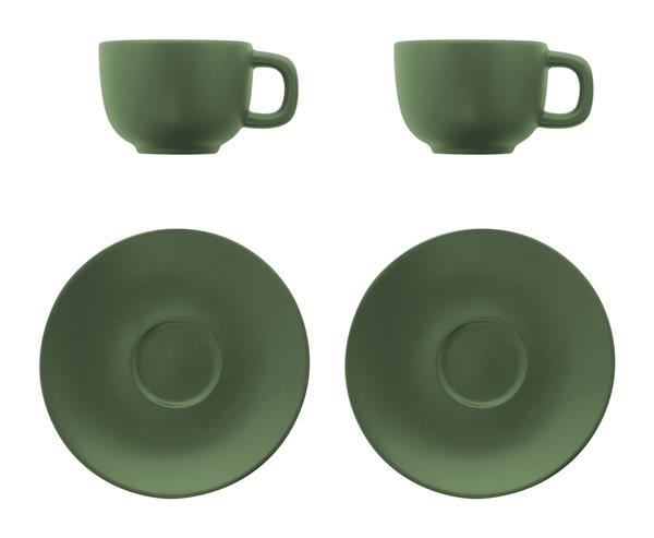 Wysokiej jakości ceramiczny zestaw filiżanek do cappuccino składający się z 2 filiżanek i spodków. Z matowym wykończeniem na zewnątrz i błyszczącym wykończeniem wewnątrz. 200 ml W pudełku z papieru kraft.