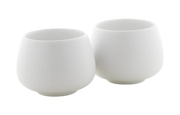 Ceramiczny zestaw do herbaty składający się z czajniczka z bambusowym uchwytem (600 ml) i dwóch filiżanek (110 ml). W pudełku z papieru kraft.