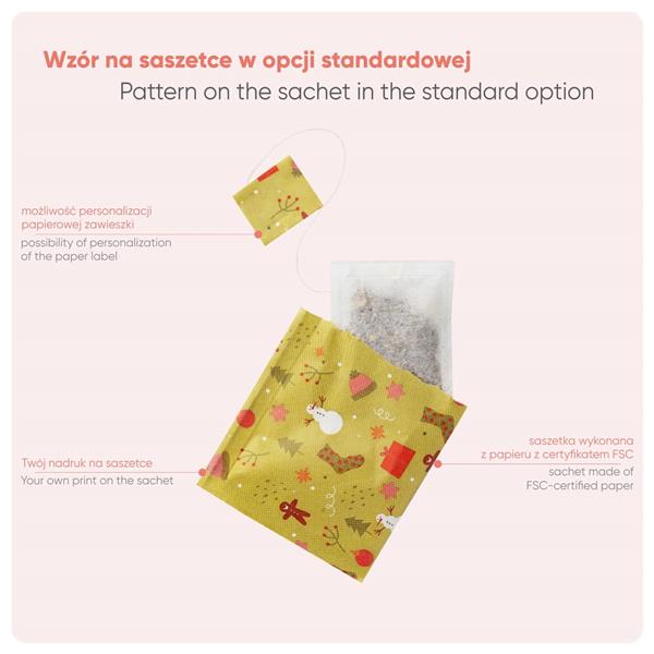 Chcesz wysłać przedświąteczną wiadomość z podziękowaniem do swoich klientów? Dodaj do niej rozgrzewającą zawartość – dwie saszetki aromatycznej czarnej herbaty.