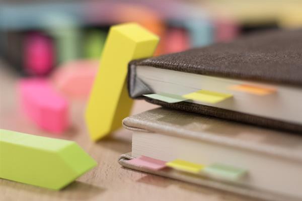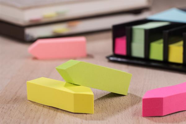 Zestaw karteczek samoprzylepnych pakowanych w czarne etui. Zestaw zawiera 1 bloczek dużych karteczek, 2 bloczki średnich karteczek i 8 małych bloczków zakładek indeksowych w różnych kolorach. Pudełko posiada miejsca na każdy z zestawów karteczek, dzięki czemu te się nie mieszają. W etui umieszczona jest kartka z miejscem na notatki. Logo grawerujemy na metalowej blaszce, którą można umieścić na wierzchu etui. Blaszka jest dołączona osobno.