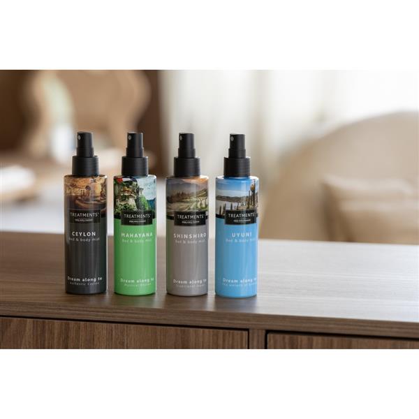 Zestaw kosmetyków Body & Fragnance Mailbox TREATMENTS, przeznaczony dla kobiet i mężczyzn, w zestawie znajduje się: mgiełka do ciała i pościeli 50 ml, olejek do ciała 50 ml, żel pod prysznic do włosów i ciała 50 ml, elegancki, papierowy kartonik, w którym zapakowane są kosmetyki, sprawdzą się w codziennej pielęgnacji, dostępne są różne warianty zapachowe: 03 – Ceylon, 06 – Mahayana, 11 – Uyuni, 19 – Shinshiro. Znakowanie produktu jest możliwe tylko na srebrnej lub złotej folii z czarnym nadrukiem albo na czarnej apli ze srebrnym lub złotym nadrukiem.