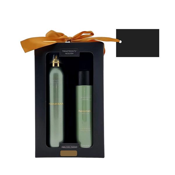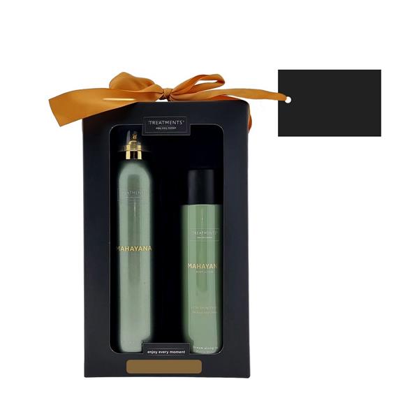 Zestaw kosmetyków Tenderness TREATMENTS, przeznaczony dla kobiet i mężczyzn, w zestawie znajduje się: pieniący się żel pod prysznic 200 ml, balsam do ciała 250 ml, elegancki, papierowy kartonik, w którym zapakowane są kosmetyki, sprawdzą się w codziennej pielęgnacji, dostępne są różne warianty zapachowe: 03 – Ceylon, 06 – Mahayana, 08 – Omani, 11 – Uyuni, 16 – Zhejinag, 19 – Shinshiro, 21 – Verona, 98 – Samoa. Znakowanie produktu jest możliwe tylko na srebrnej lub złotej folii z czarnym nadrukiem albo na czarnej apli ze srebrnym lub złotym nadrukiem.