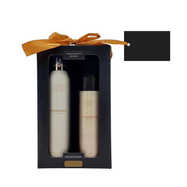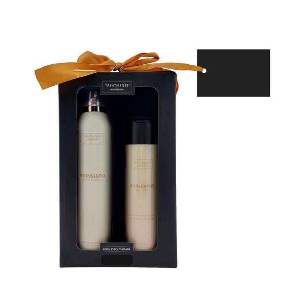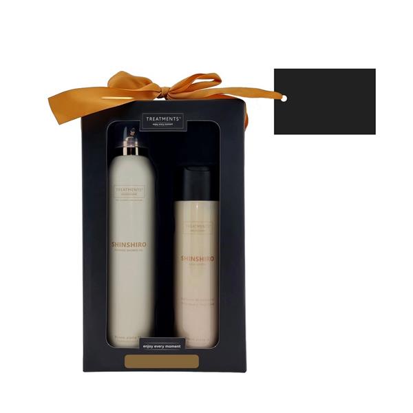Zestaw kosmetyków Tenderness TREATMENTS, przeznaczony dla kobiet i mężczyzn, w zestawie znajduje się: pieniący się żel pod prysznic 200 ml, balsam do ciała 250 ml, elegancki, papierowy kartonik, w którym zapakowane są kosmetyki, sprawdzą się w codziennej pielęgnacji, dostępne są różne warianty zapachowe: 03 – Ceylon, 06 – Mahayana, 08 – Omani, 11 – Uyuni, 16 – Zhejinag, 19 – Shinshiro, 21 – Verona, 98 – Samoa. Znakowanie produktu jest możliwe tylko na srebrnej lub złotej folii z czarnym nadrukiem albo na czarnej apli ze srebrnym lub złotym nadrukiem.